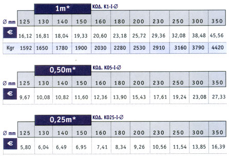 Τα παραπάνω είναι ετοιμοπαράδοτα σε δίμετρα-τρίμετρα και στις 2 σειρές καπνοδόχων